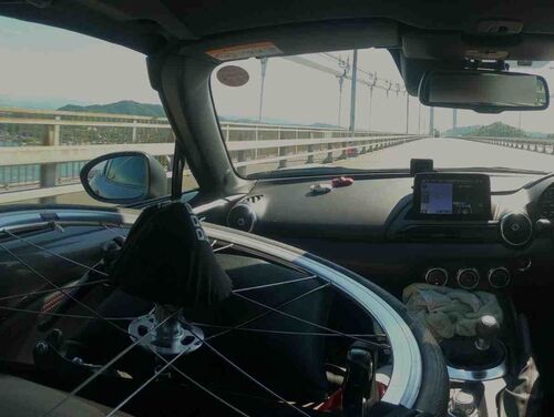 ロードスターの助手席にミニベロを載せて、大崎上島で開催されたサイクリングイベントに参加してきました。 今回のイベントは大三島に車を置いて、フェリーに自転車を載せて大崎上島へ渡りイベントに参加。イベント終了後同様にフェリーで大三島に戻ったあと…